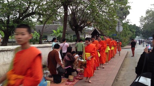 Лаос, кормим монахов из рук, древняя традиция или очередное туристическое шоу?