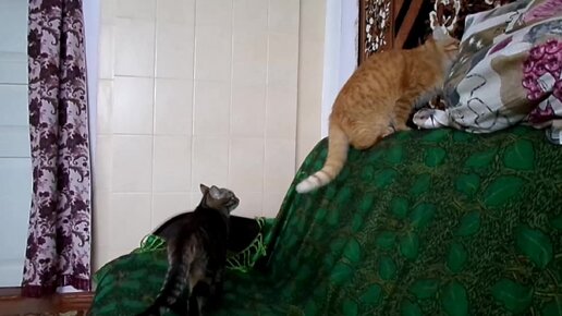 Котята в доме. Недоумение от отсутствия любимой подушки. Выглядит забавно