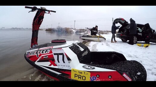 Тройной БЭКФЛИП на гидроцикле зимой | Чуть не утонул