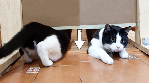 Насколько гибкий кот? Стена каждый раз опускается, на скольки сантиметрах кот не пройдет?