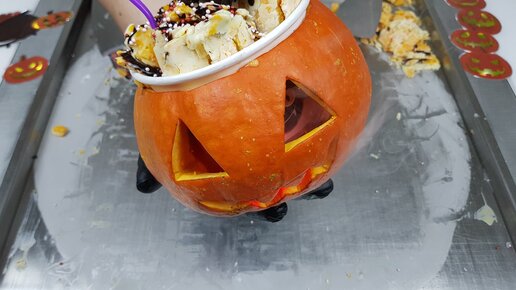 Сделал жареное мороженое из тыквы | HALLOWEEN Ice Cream Rolls | ASMR