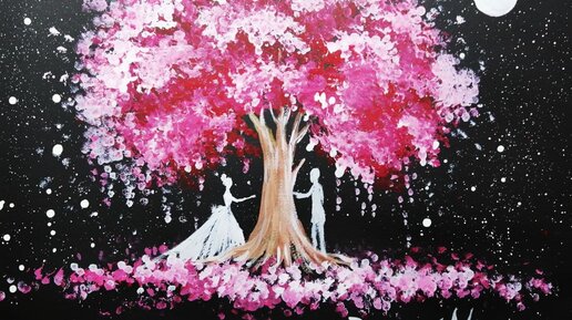 Очень простой рисунок ватными палочками . Рисую Дерево любви.