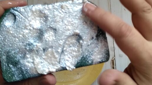 Жамкаю зелёную губку для цветов которую замочила и украсила блёстками. Проверяю популярные видео в интернете