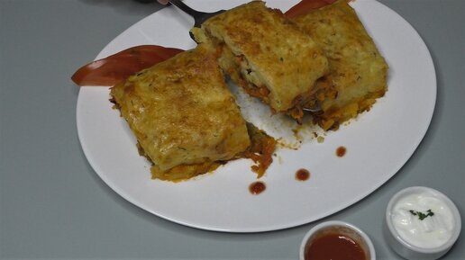 Картофельный рулет с овощной начинкой. Бюджетный и очень вкусный рецепт. Привет из 90-х