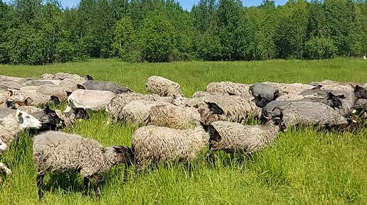 Стадо редкой породы. Романовская овца. Где-то в полях.