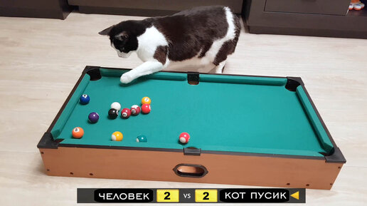 Научил кота играть в бильярд. Показываю как он обыгрывает человека