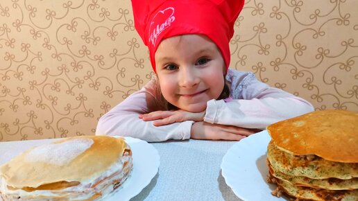 Для бабули и папули дочка приготовила блинные торты с разными начинками