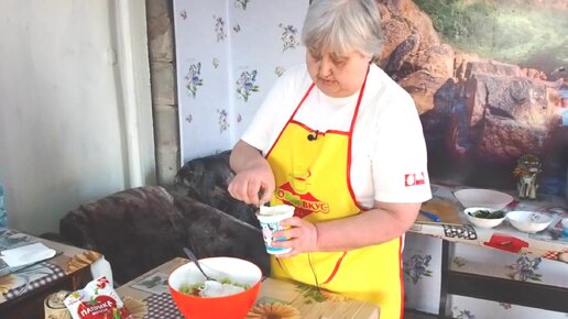 Как в деревне родные дети разговаривают со своей мамой за совместной работой и приготовим салат с печенью вместе