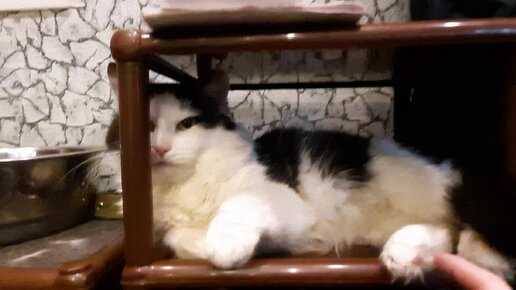 Кот отдыхает на полочке. Пытаюсь погладить, а он начинает меня бить