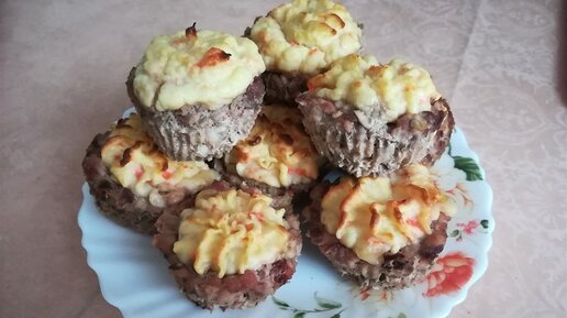 Маленькие мясные кексы с картошкой и сюрпризом. Отличная закуска, на праздничный стол или праздник в любой день.