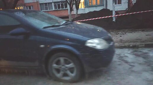 Автомобили покрышками примёрзли к дороге. Последствия прорыва водопровода