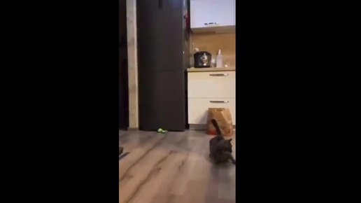 На кота бросили игрушку, он испугался и станцевал брейк данс