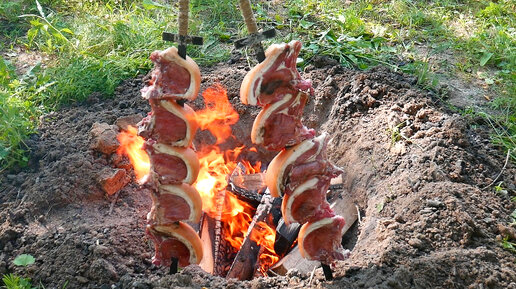 Как приготовить свиную корейку на огне. Шашлык Тамплиеров. Мясо на мечах.