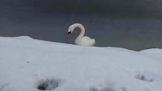 Красивые лебеди на зимнем Балтийском море
