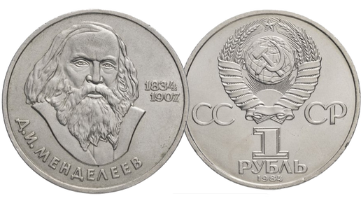 Монета 1 рубль 150 лет со дня рождения Д. И. Менделеева.