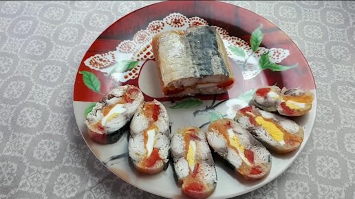 Царский рулет из скумбрии с овощами. Яркий, праздничный и очень вкусный