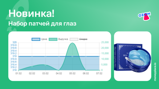 Moneyplace.io - продажи набора патчей на Ozon. Аналитика маркетплейса