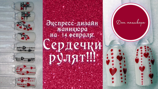 Простой и быстрый дизайн ногтей на 14 февраля! Сердечки рулят;)