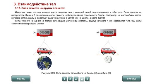 7.3.12 Сила тяжести на других планетах