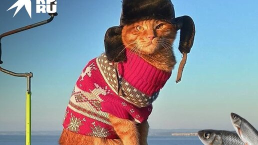 Кот Симба – рыбак в шапке-ушанке