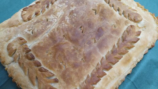 Курник с грибами из слоёного дрожжевого теста