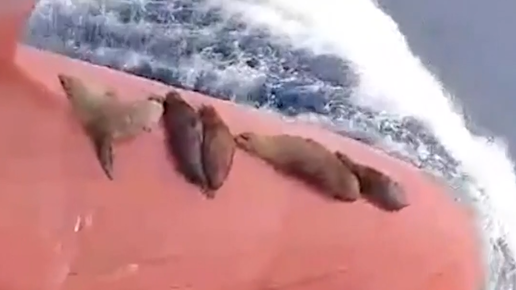 Обленившиеся морские львы решили доплыть до места на попутном судне