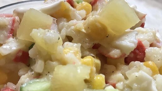 Легкий салатик с крабовыми палочками и неожиданным компонентом, можно есть каждый день!