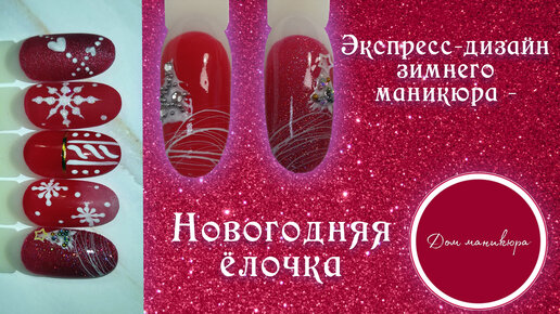 Новогодний экспресс-дизайн ногтей. Красивый зимний маникюр. Новогодняя елочка.