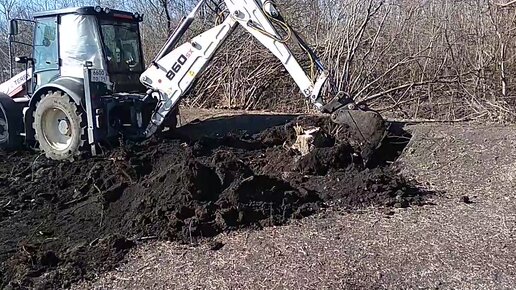 Как трактор TEREX корчует спиленную иву