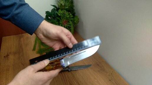 Посмотрите, ну разве это не прелесть. Удивительный композит на рукояти ножей и волшебный дамаск
