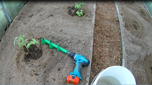 Посадка рассады томатов с помощью буравчика