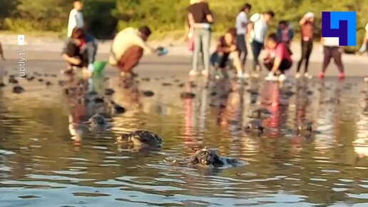 В Никарагуа на волю выпустили сотни маленьких оливковых черепашек