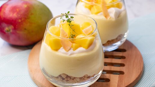 Трайфл. Тропический десерт в стакане без выпечки. Мусс с манго.