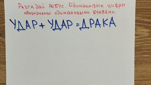 Ребус для разминки мозгов: удар+удар=драка. Какие цифры зашифрованы под буквами?