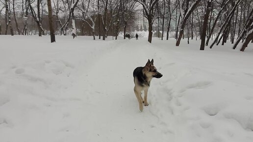 Дикий щенок овчарки в парке. Думает, к кому бы пристать