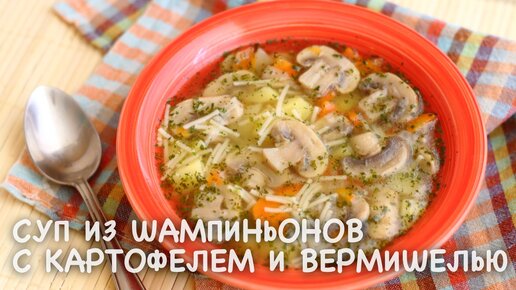 🍜 Суп из шампиньонов с картофелем и вермишелью — видео рецепт