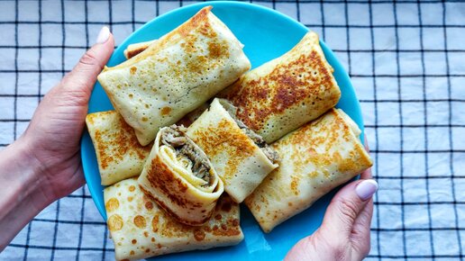 Сытные блинчики с фаршем и грибами