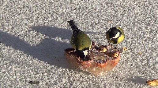 Синего у них ничего нет. Показываю зимнее пиршество маленьких, юрких, шумных синичек