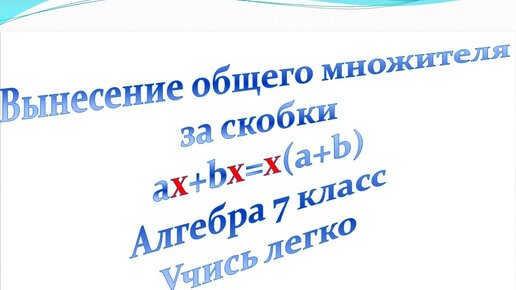 Как выполнить вынесение общего множителя за скобки? Показываю.