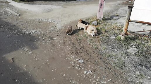 Собака Белка с щенками греются на солнце. Все живы здоровы.