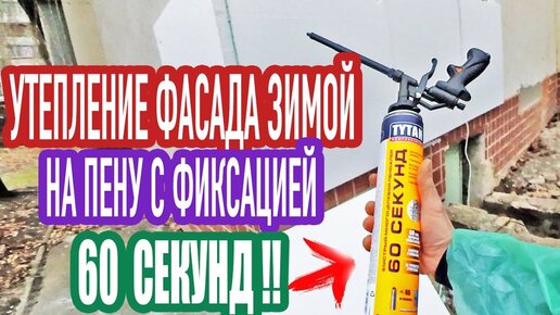 УТЕПЛЕНИЕ ФАСАДА ЗИМОЙ НА КЛЕЙ ПЕНУ-ФИКСАЦИЯ 60 СЕКУНД. КЛЕИМ ПЕНОПЛАСТ БЕЗ ПАРАШУТОВ.
