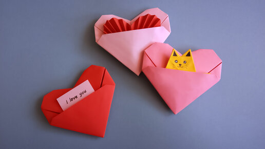 Оригами валентинка с кармашком из 1 листа бумаги А4