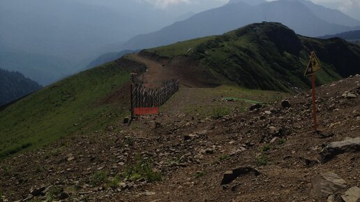 Человек идет по канатной дороге