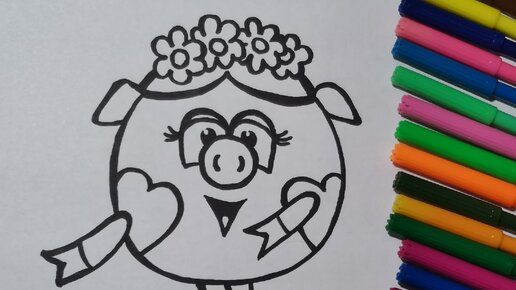 Как нарисовать свинку Нюшу из Смешариков. Рисуем с детьми