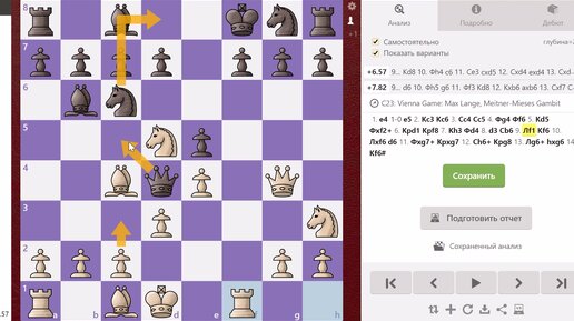 Чудесная ловушка в венской партии - ранний вывод черного ферзя очень испортил жизнь своему королю - мат на 14 ходу игры