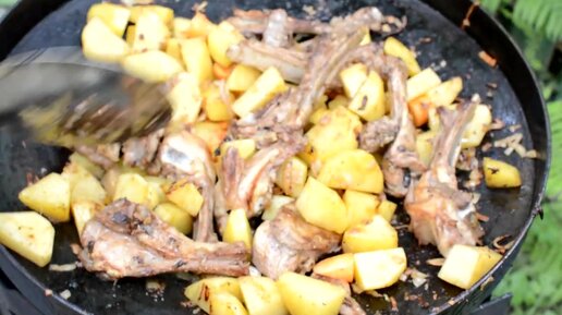 БАРАНИНА с КАРТОШКОЙ. МЯСО с КАРТОШКОЙ. СКОВОРОДА ИЗ ДИСКА БОРОНЫ.