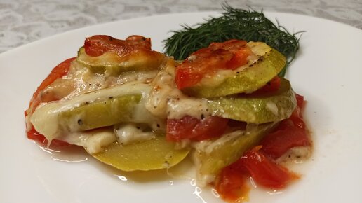Кабачки запечённые с помидорами и сыром сулугуни. Яркие краски лета среди снежной зимы