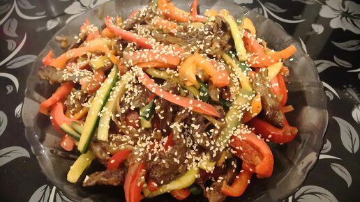 Теплый салат с мясом и овощами. Гости будут в восторге