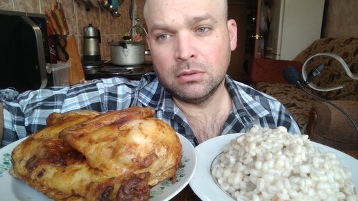 Кушаю перловую кашу с курицей гриль.