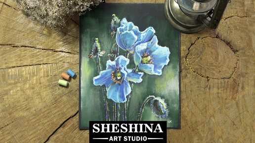 Как нарисовать голубые маки сухой пастелью 🎨 Шешина Екатерина